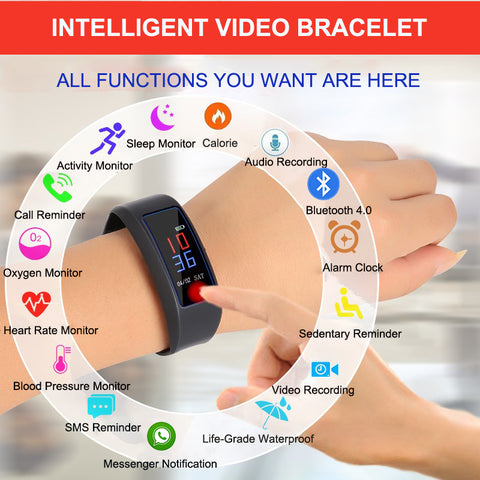Hidden camera Smart bracelet 1080P, Invisible Camera lens Fitness tracker, Wearable Spy camera wristband.